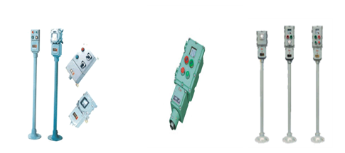 防爆操作柱在電路中作遠距離操作電磁或?qū)π盘?、控制用電路進行通斷、轉(zhuǎn)換控制之用,也可在被控電機附近 地、間接對其進行起動、停止、反轉(zhuǎn)操作;裝有電流表的操作柱還可對電機運行或電路情況進行監(jiān)測。